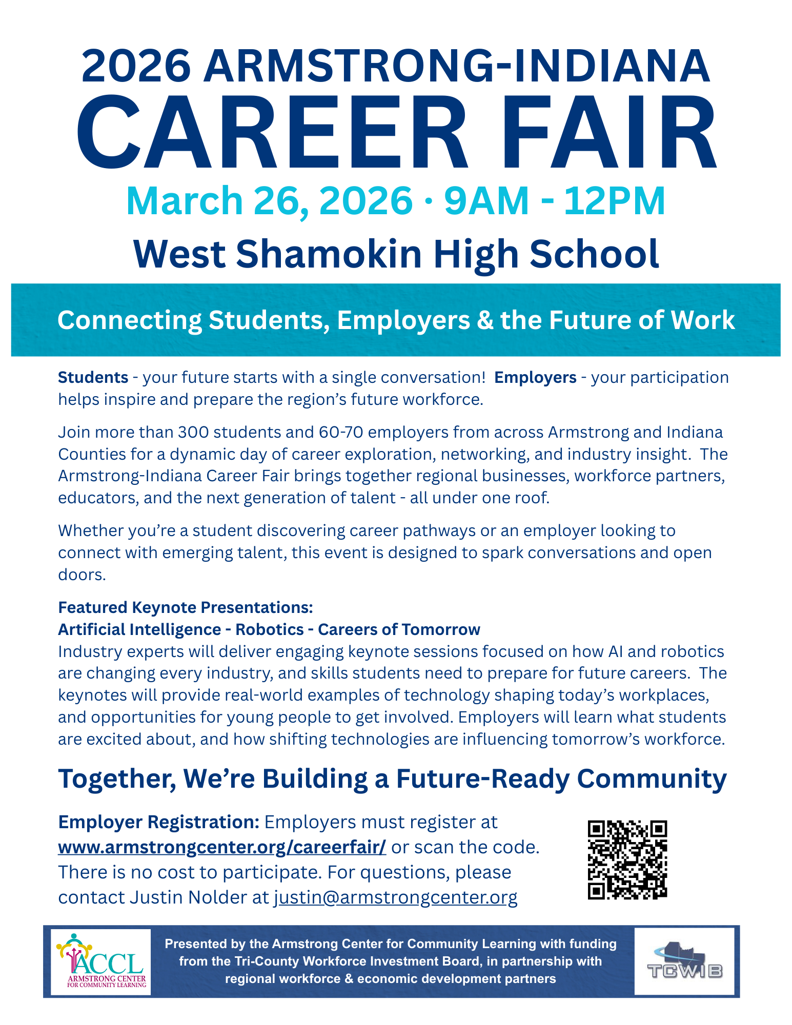 The 2026 Armstrong-Indiana Career Fair is made possible by a Business-Education Partnership Mini Grant from the Tri-County Workforce Investment Board.